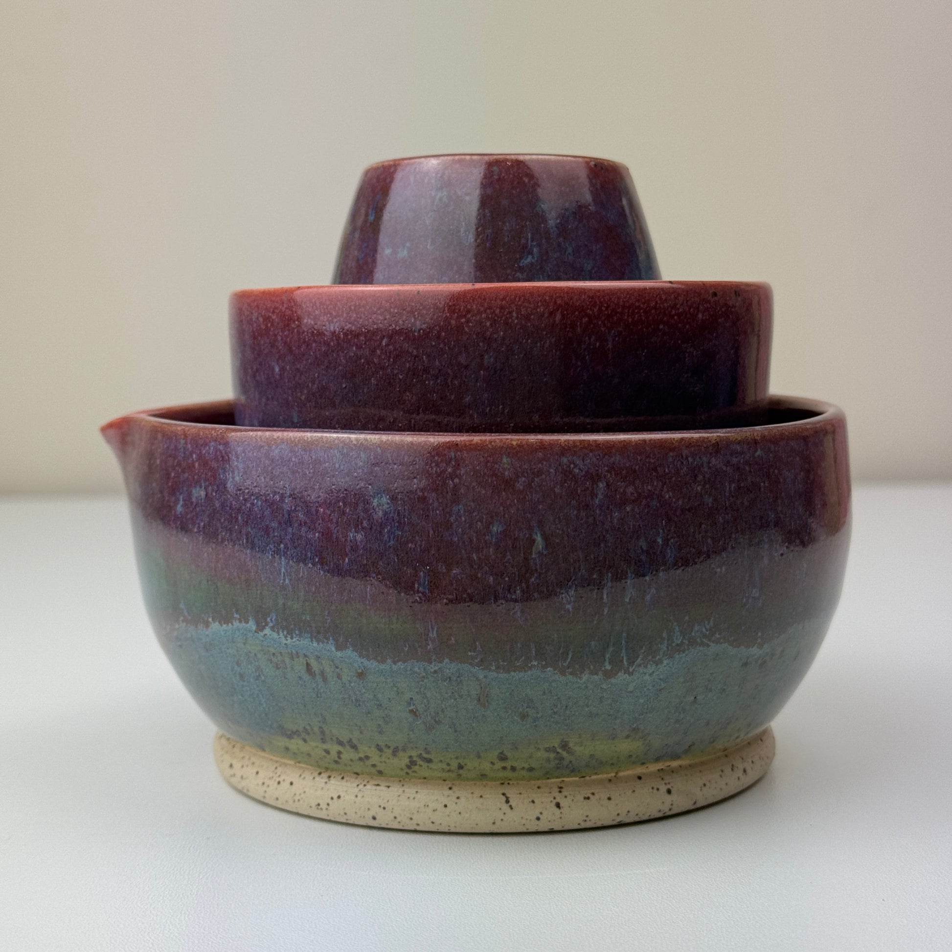 the colors are mesmerizing and the set stacks together so beautifully so it wont take up too much space on your counter or shelf
