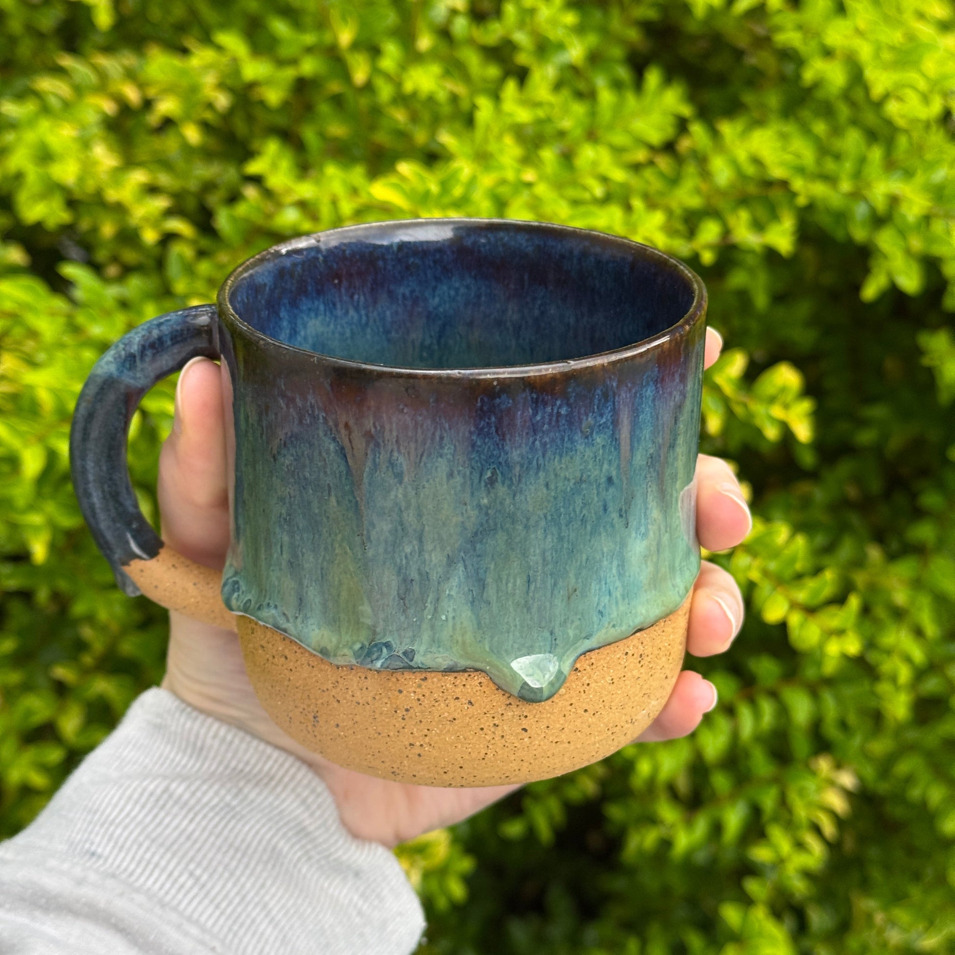 This beautiful mug has an entrancing color mix of blues, greens, and slight touches of purple